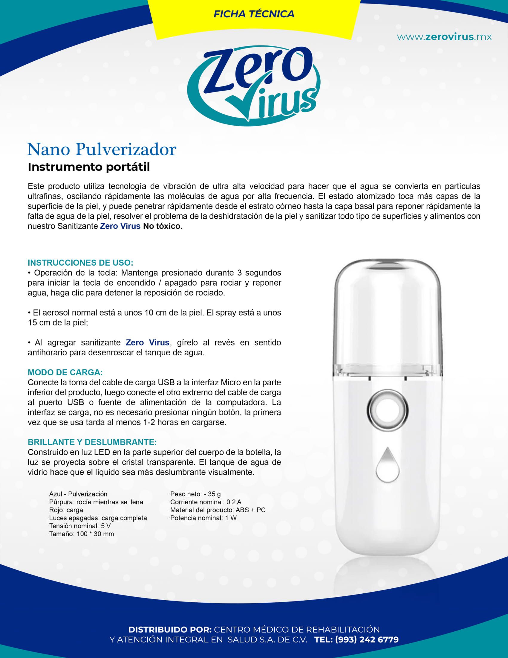 Este producto utiliza tecnología de vibración de ultra alta velocidad para hacer que el agua se convierta en partículas ultrafinas, oscilando rápidamente las moléculas de agua por alta frecuencia. El estado atomizado toca más capas de la superficie de la piel, y puede penetrar rápidamente desde el estrato córneo hasta la capa basal para reponer rápidamente la falta de agua de la piel, resolver el problema de la deshidratación de la piel y sanitizar todo tipo de superficies y alimentos con nuestro Sanitizante Zero Virus no tóxico.